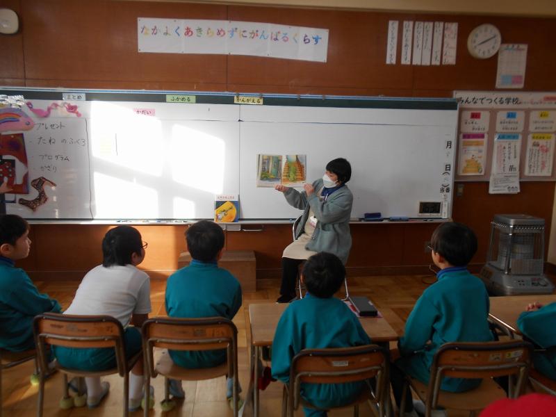 読んだことのないお話だった児童が多く「初めて見る!」と興味津々の子供たち。背筋を伸ばし、また、身を乗り出してお話の世界に浸っている様子でした。