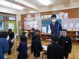 スクールカウンセラーの岩井先生をお招きして、「構成的グループエンカウンター」の授業を行いました。「もっと友達のことを知ろう」というめあてで、質問じゃんけんというゲームを行いました。
