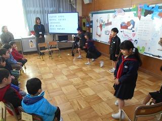 年長さんに、小学校のことを知ってもらって、楽しんでもらおうと準備しました。学校探検、校歌や合奏の発表、国語・算数のミニ授業、昔遊び、プレゼントわたしなどをしました。