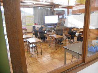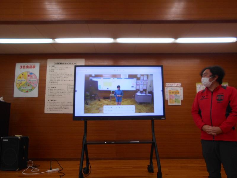 ランチルームで給食を食べながら、6年生の技の動画を視聴しました。