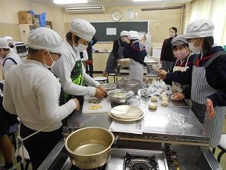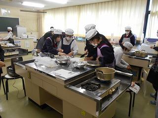 12月20日(金)午後に、萩野台コミュニティーの調理室をお借りして、家庭科の調理実習をおこないました。