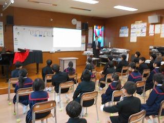 校長先生から、萩野台小学校の「あいさつ・えがお・そうじ・きょうりょく」津幡一のすてきな姿がたくさん紹介されました。