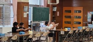 低学年におすそ分けに行く前にお話しすることを打合せしていました。
