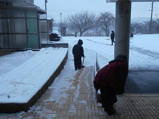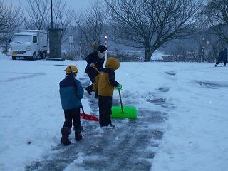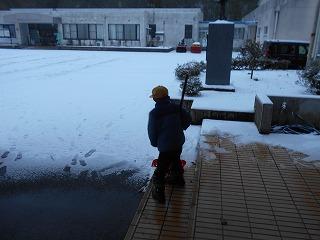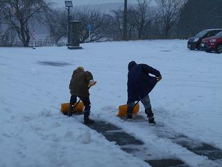 雪が降る中、早く登校した児童が自分から進んで、雪かきのお手伝いをしてくれました。