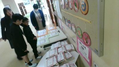 今日の通知表渡しでいらっしゃるお家の方や萩野っ子のみんなに見てもらい、