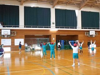 まずは、ウォーミングアップとして行っている、約4分間の「なわとビクス」に取り組みました。