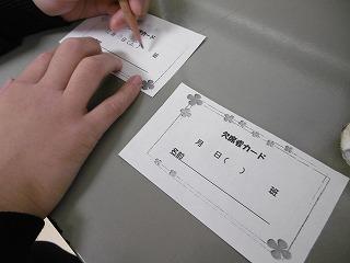 長休みに保健室で今日の欠席を確認し、ランチルームの座席に欠席カードを貼ります。