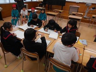 1,2年生は書写の時間に書き初め大会に向けて練習をしています。