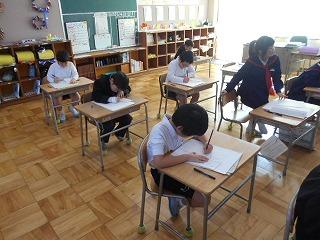 鉛筆の持ち方、姿勢、筆圧などを確認しながら、一生懸命練習に取り組んでいました。