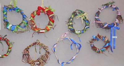 先日つくった朝顔のつるのリースも見てください。