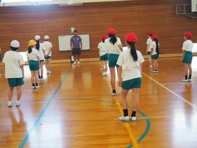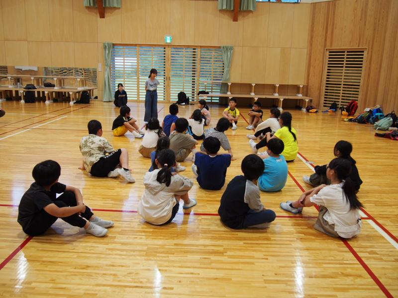 グループの皆で仲良くなれる遊びを友達と話し合って考え、体育館で一緒に遊んでいました。