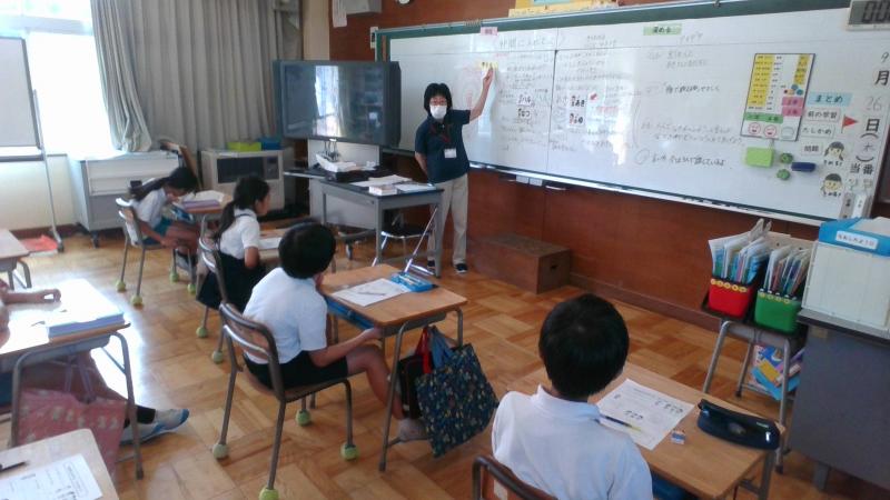 児童全員との個別面談や普段の授業の参観などでいつもお世話になっていますが、一緒に教室で勉強するのは初めて、ということで、子どもたちもわくわくしていました。