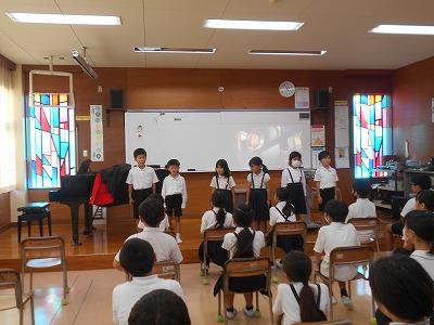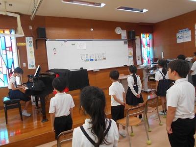 校歌は4年生の伴奏で元気よく歌うことができました。温かい雰囲気での集会がスタートしました。