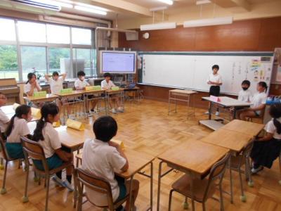 7月16日の朝、5年生の児童のご家庭からスイカをいただき、長休みにみんなでいただきました。