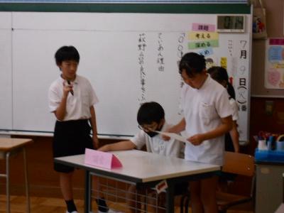 今日は図書委員会のみなさんが、朝学習の時間を使って、夏休みの読書感想文にオススメの課題図書の紹介に来てくれました。