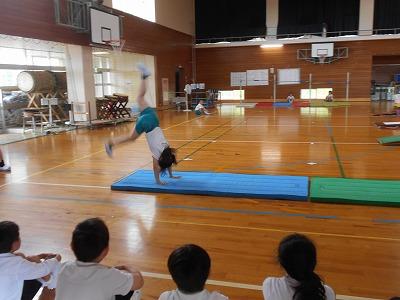 笠野小学校で器械運動交歓会にむけての合同練習が行われました。