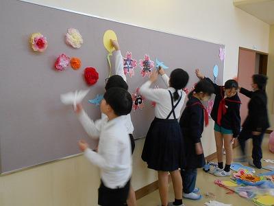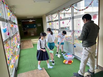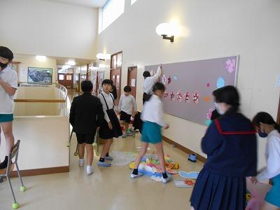 3・4年生が2階の廊下の掲示板に飾りをしてくれました。