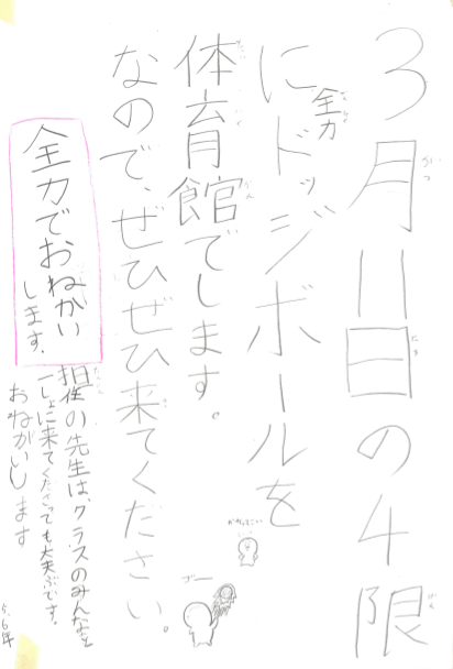 卒業を前に、先生たちとドッジボールがしたい!という6年生の思いから