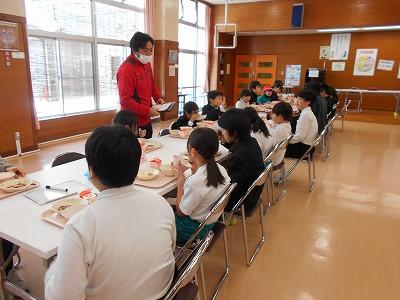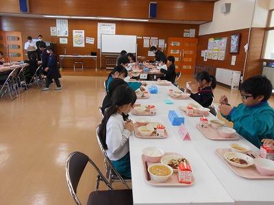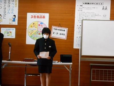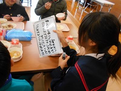 給食時間には、5年生の健康委員から明日の8の字なわとび大会についてのお知らせがありました。
