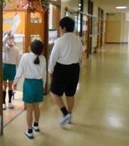 なかよく手をつないで学校探検です。
