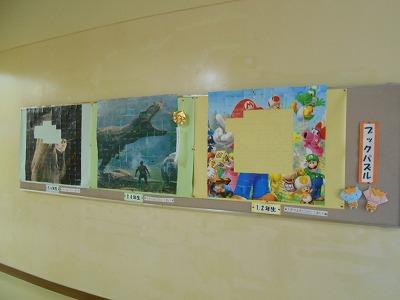 目標冊数になるとパズルのピースがもらえるという取組をずっとしており、先日、3・4年生がついに完成しました。
