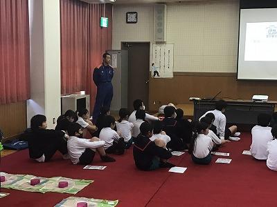 消防署の吉田さん(6年生の琉唯さんと莉子さんのお父さん)を招いて、訓練が行われました。
