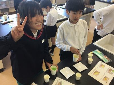 自分の好きな色のスライムを作るために、絵の具をまぜまぜ!