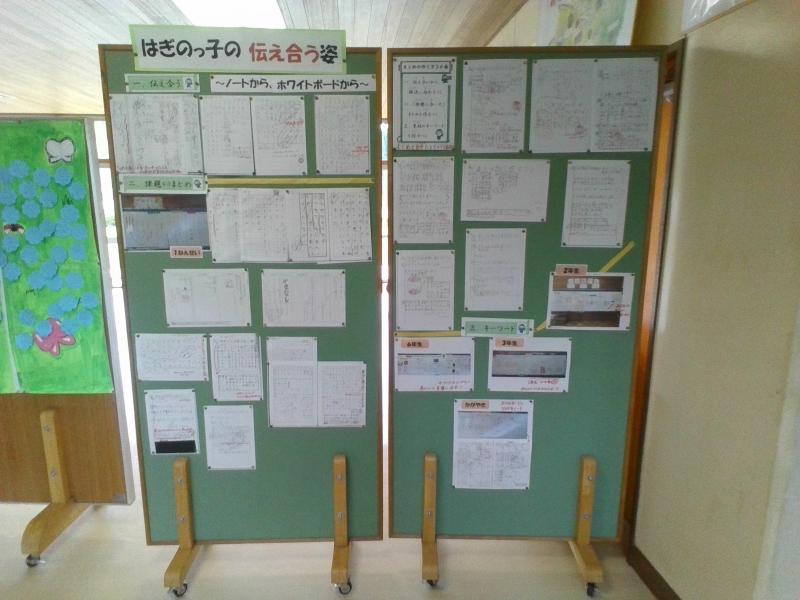 自分や友達の考えをしっかりと書いてあったり、自分でキーワードをわかりやすく書いてあったり、矢印や図を使ってまとめてあったりする、すてきなノートがいっぱいになりました。そこで、そんな学びのすてきな努力の結晶を展示室に掲示しました。ぜひ見てくださいね。
