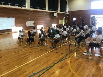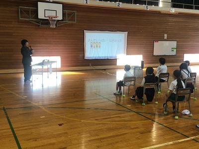 すこやか集会では、正しいメディアの使い方について、健康委員会の発表、スクールカウンセラーの岩井いづみ先生をお招きして、話をしていただきました。みんなのアンケートの結果をもとに、今までのメディアの使い方や生活をふり返ることができました。使いすぎると依存してしまい、体にどんな影響を与えるのかを知ることができました。