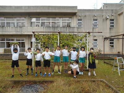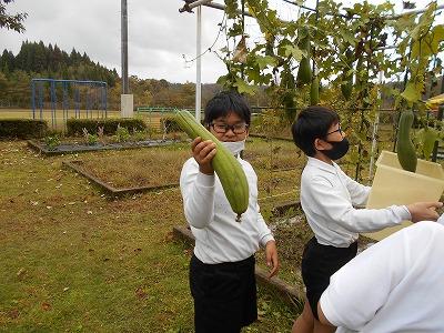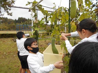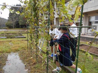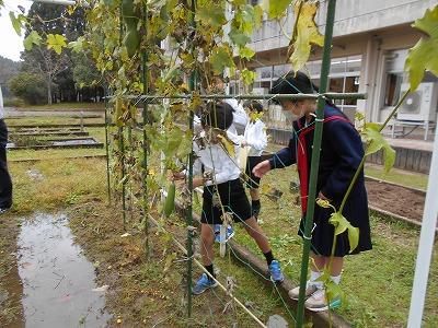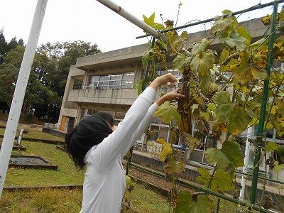 理科の授業で、5月に植えたヘチマの実を収穫しました。