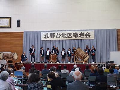 10/15(日)☂ 敬老会のオープニングで萩野っ子太鼓を演奏しました!