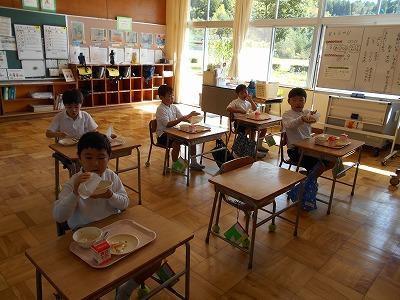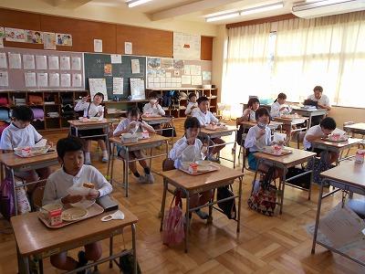給食時間、どのクラスでもニコニコ笑顔で揚げパンをほおばる様子がほほえましかったです。