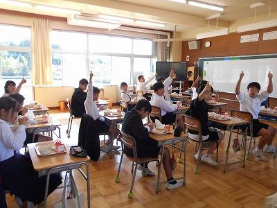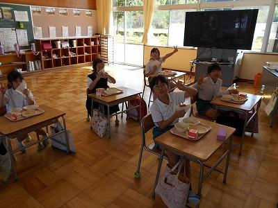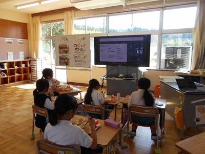 このように、みんなで大型テレビを視聴しながら給食を食べていました。