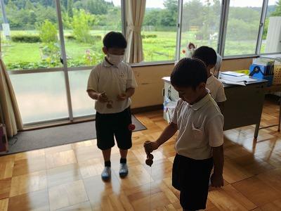 室内でけん玉やじゃんけんグリコなどをする元気な姿を見ることができました。