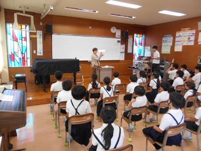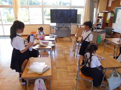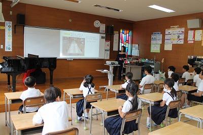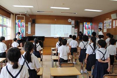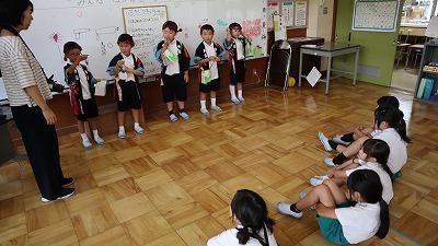 3・4年生は先生から、宿題についてのお話を聞いていました。