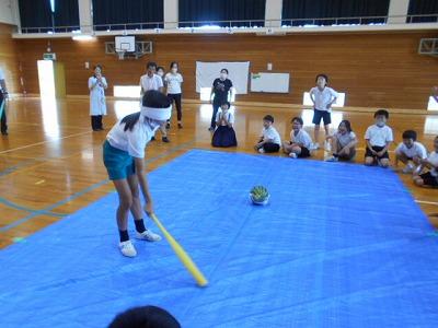 最後の班の6年生は見事!すいかにバットが当たりました。