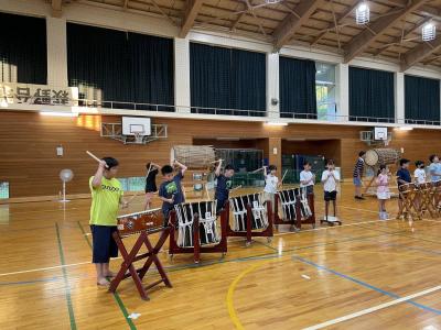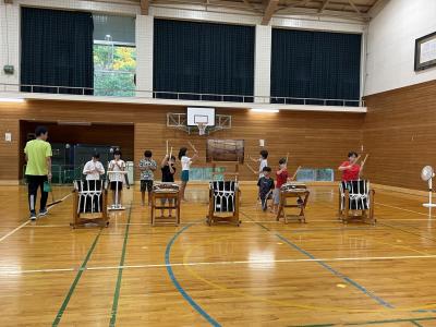 久しぶりの太鼓に少し緊張している様子の児童もいましたが、短い時間で感覚を取り戻し、はっぴを着ると表情も変わって気迫が伝わってきました。