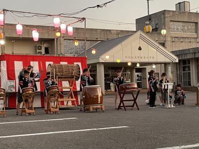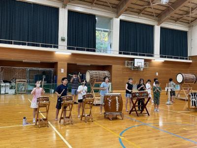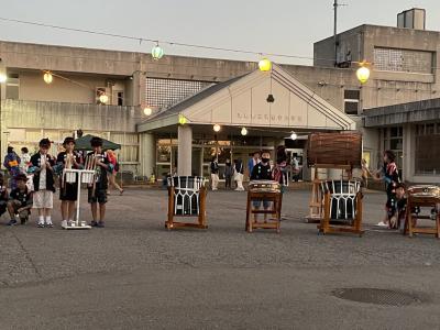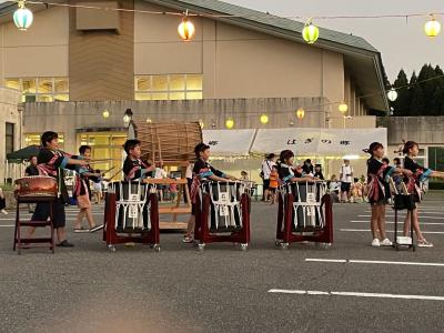 山の日の今日、地域の夏祭りで「はぎのっこでんでこ太鼓」を披露しました。