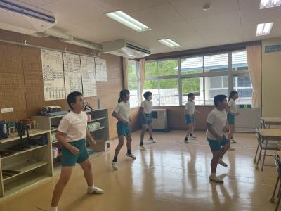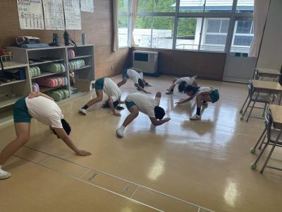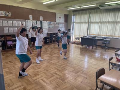 5限目に、3年生から6年生でよさこいソーランの合同練習を始めました。