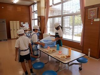 4・5年生当番。授業が少し長引いた5年生の分まで、4年生5人で頑張っていました!