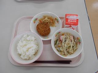 ごはん、あいまぜ風、小矢部縄文里芋コロッケ、氷見うどんです。