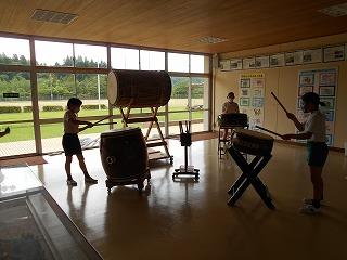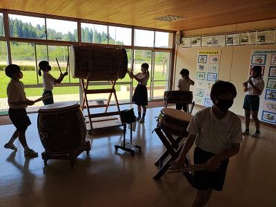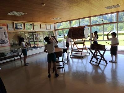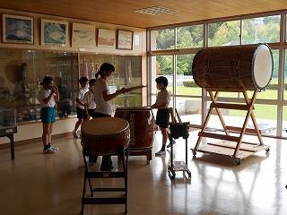 いつも高学年がたたいているのを聞いている4年生、たたくのは初めてで少し緊張した様子でした。