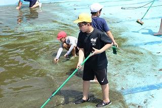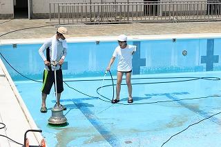 今日の昼から4~6年生の児童でプール掃除を行いました。