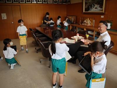 1・2年生は今日校長先生がお仕事をしている部屋、