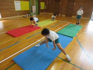 4年生は、6月1日に行われる器械運動交歓会に参加します。器械運動交歓会では、鉄棒・跳び箱・マット運動の技を披露します。そのために、新しい技ができるようになるため、またできる技の完成度をあげるために一生懸命に頑張っていました。また、3年生も来年のために、技ができるようにがんばっていました。