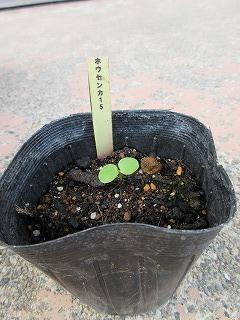・4月18日にまいた4種類のたね(ヒマワリ、オクラ、ピーマン、ホウセンカ)から、子葉がでました。