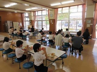 給食を準備する様子から見ていただきました。その後、保護者の皆様は、ランチルームで1~3年生と一緒に給食を食べました。保護者の皆様、お忙しい中、ありがとうございました。