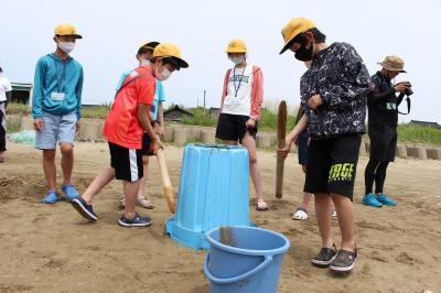 午後からは、海岸へ移動し砂像づくりに取り組みました。