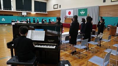 みんなで最後の校歌のプレゼントです。