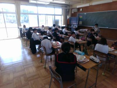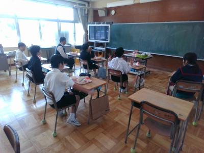 普段は担任の先生と給食を食べていますが、今週は日替わりでいつもとは違う先生が教室にやってきて、一緒に給食を食べます。